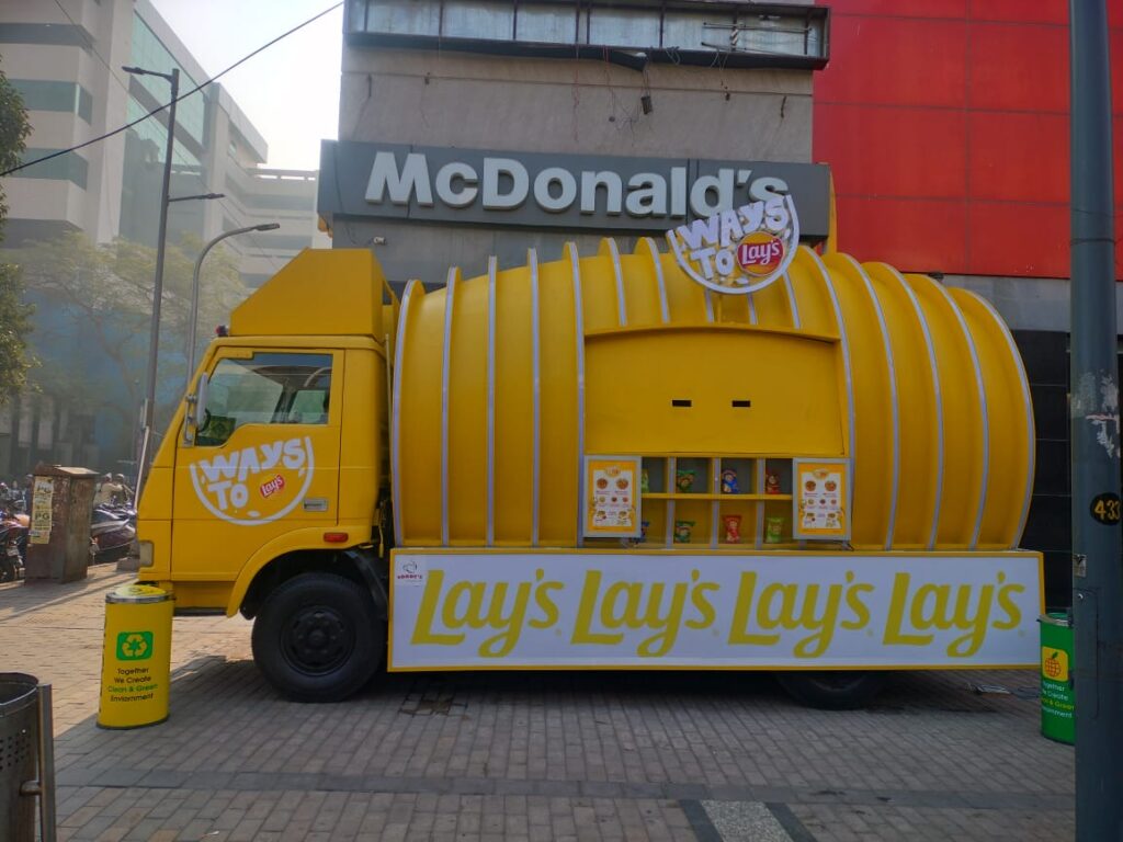 - What it is: Branded vans, trucks, or buses customized with displays, sampling counters, digital screens, or interactive zones.